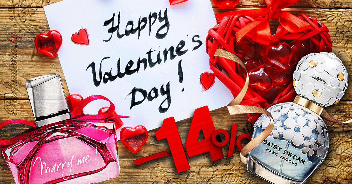 Друзья, в феврале нас ждет самый романтичный праздник года - День Святого Валентина, или День влюблённых, который празднуется 14 февраля. В этот день все дарят своим любимым и дорогим людям подарки. Наш магазин Parfumeria.by! также приготовил для Вас приятный сюрприз! При покупке двух товаров из списка ниже Вы получаете скидку 14%!